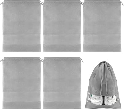 Shoe Bags for Travel, 5 Pcs Large Gray Travel Shoe Bags for Packing, Non-Woven Drawstring Travel Shoe Storage Bag with Clear